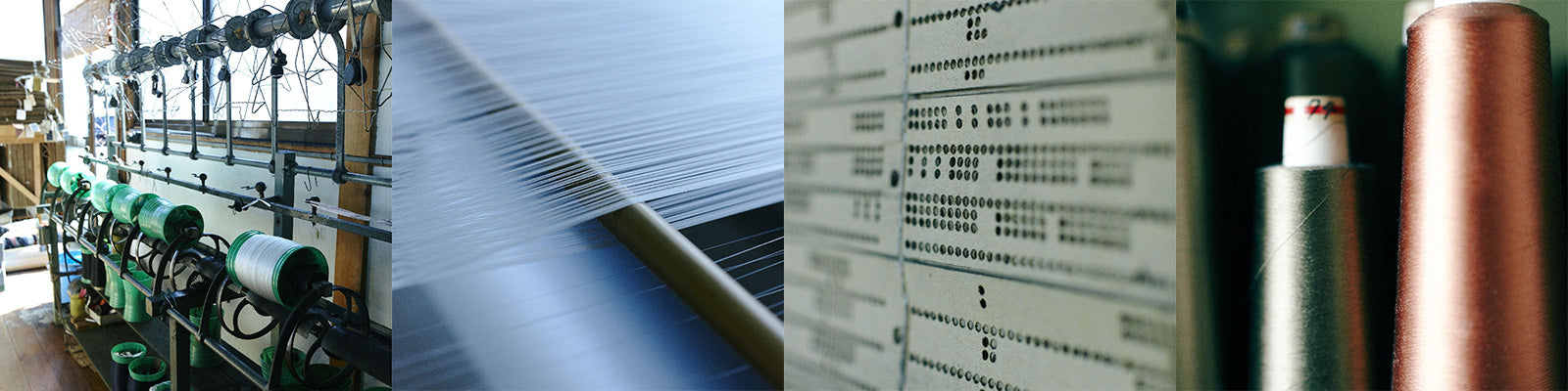 HADACHU ORIMONO is the factory specializing in weaving silk mainly with other natural yarns in high-density jacquard. Especially, SHAORI, transparent fabric made with twisted yarn to create space between yarns, which has been used for Japanese summer Kimono, HADACHU ORIMONO re-create this traditional textile into modern tie fabric.